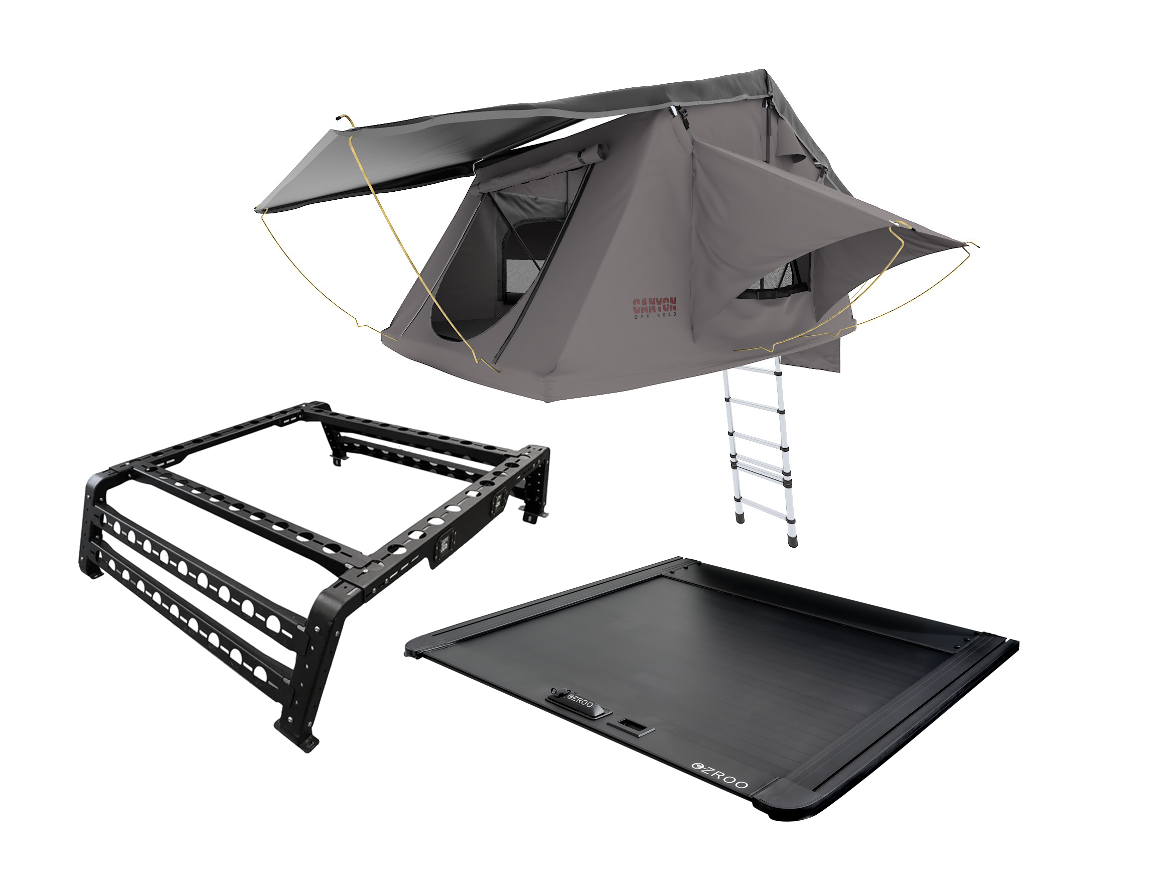 Camp in style and comfort with top quality roof top tents from Canyon Off-road. Our hard shell rooftop tents and soft shell rooftop tents will fit easily onto the back of your dual cab and tub rack.