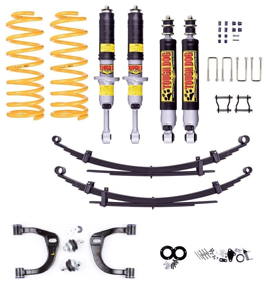 Wanting all of the advantages of a adjustable shock, at an affordable price with 3 year, unlimited KM warranty ? Tough dog lift kits are the answer.